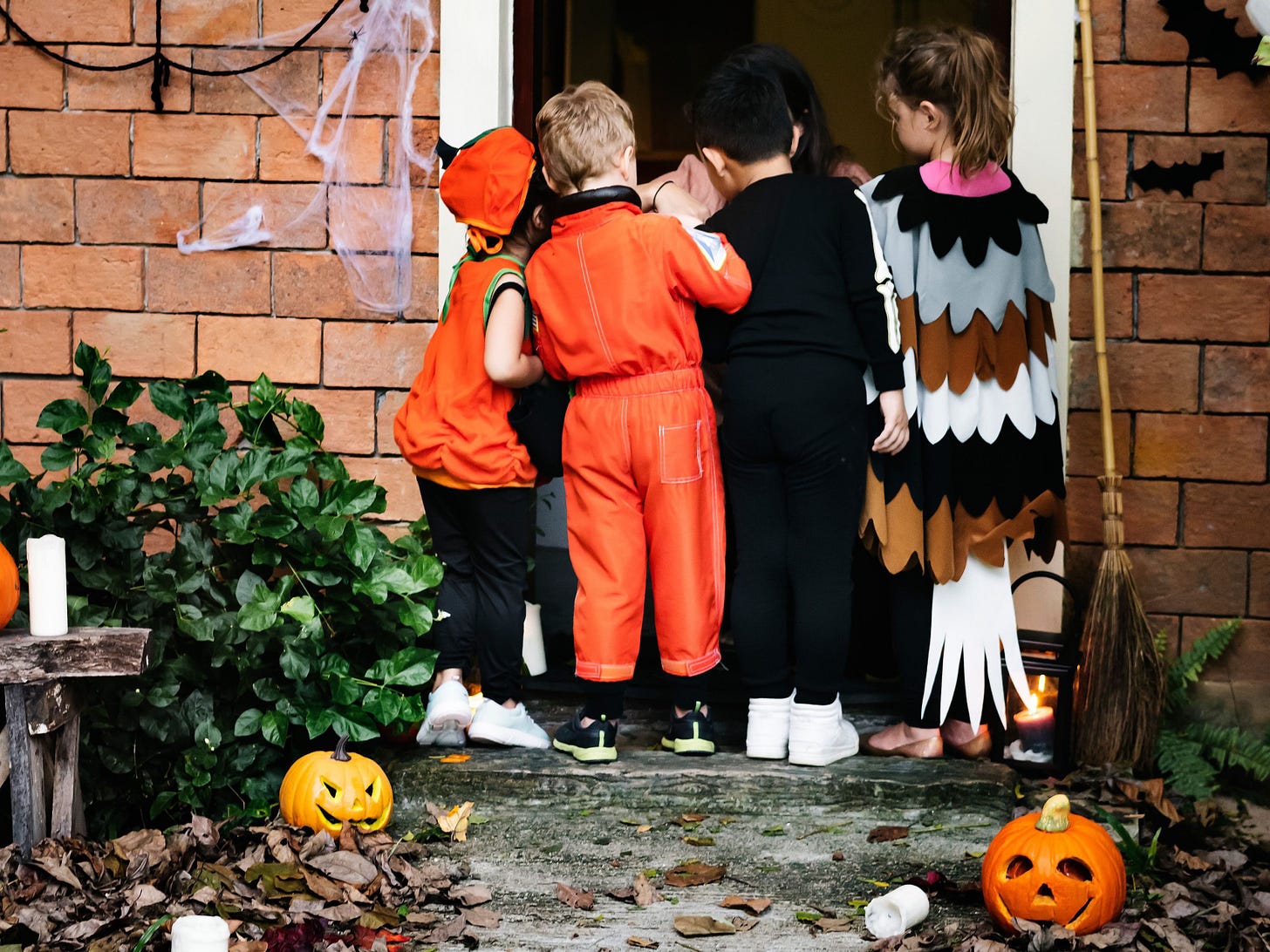 Se avete figli, Halloween significa anche dolcetto scherzetto. La tradizione, nata tra Scozia ed Irlanda nel 1600, consiste nell’andare di casa in casa chiedendo dolcetti in cambio di una piccola performance. La performance oggi non esiste, c’è solo la transazione. Dammi i dolcetti o te ne pentirai!